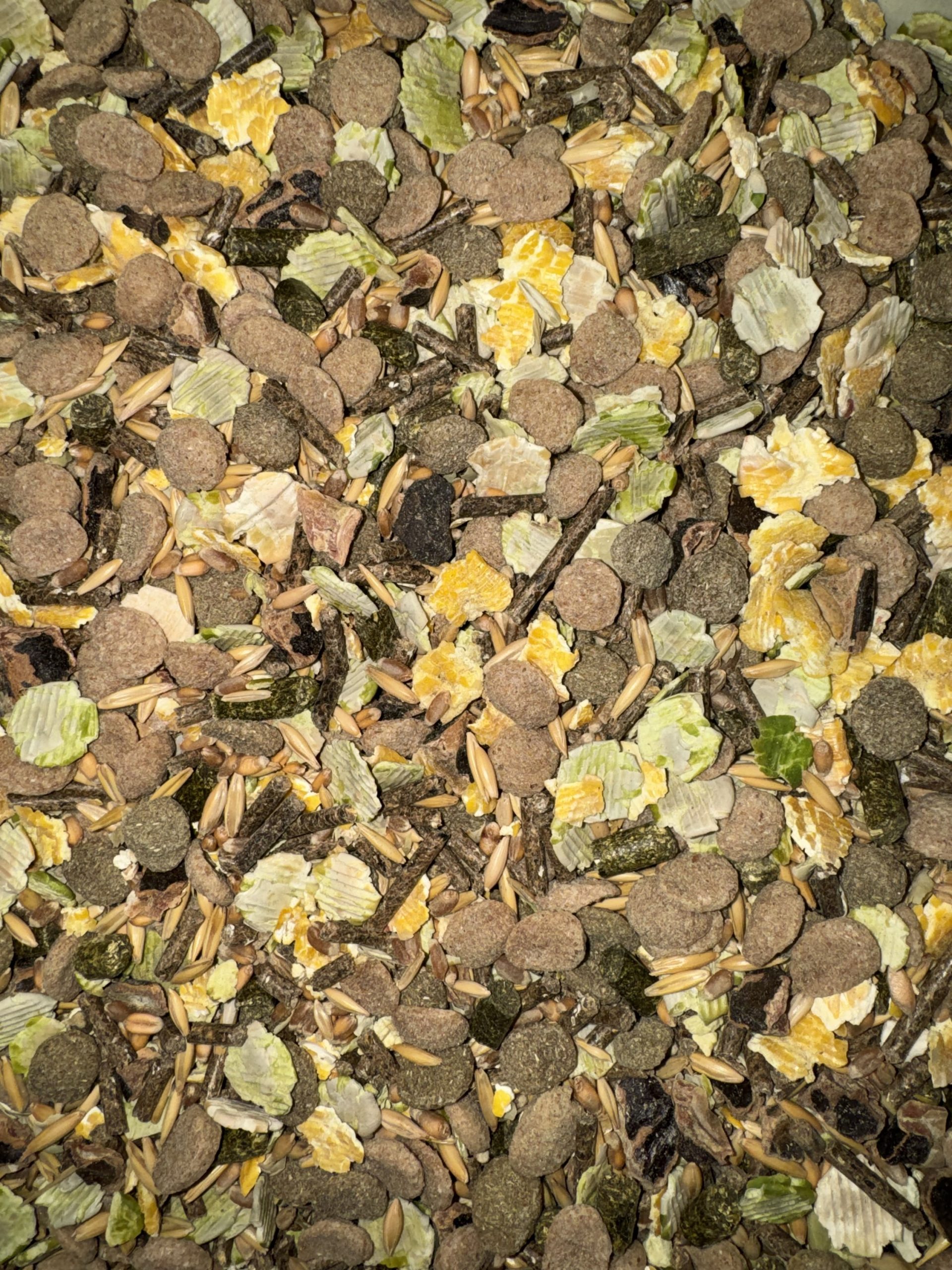 A complementary feed for rabbits. This mix is a palatable complementary diet plan to help maintain the rabbit’s health and fitness by contributing some vitamins, minerals and composite nutrients including protein and fibre.